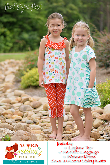 Beep. Beep. I'm back with another tour! This time, I am so excited to be on tour with Patty Young of Modkid showcasing three of her patterns in her newest fabric line -- Acorn Valley for Riley Blake. This line comes in both flannel and knit. For this line, there are 5 prints available, each in 2-3 colorways.