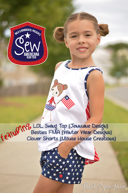 Enter the new pattern I purchased specifically for this post -- the Besties Free Motion Applique by Winter Wear Designs. Of course, the American flag is not part of the pattern, but it was super easy to add! I raided my scraps bins and came up with my choices -- hair is leftover from my daughter's Gingerbread Girl outfit, shirt and shoes are from an old work t-shirt, skirt is left from my youngest's Easter coat (2015), and the flag stripes are left from who knows where... haha. This is now my 3rd FMA and I laugh because after my first attempt, I swore I'd probably never do it again because it took me f-o-r-e-v-e-r. Some things grow on you (and yes, I've gotten a bit faster). It was totally worth extra time it took when my daughter saw it for the first time and let out a squeal while hugging the mannequin.
